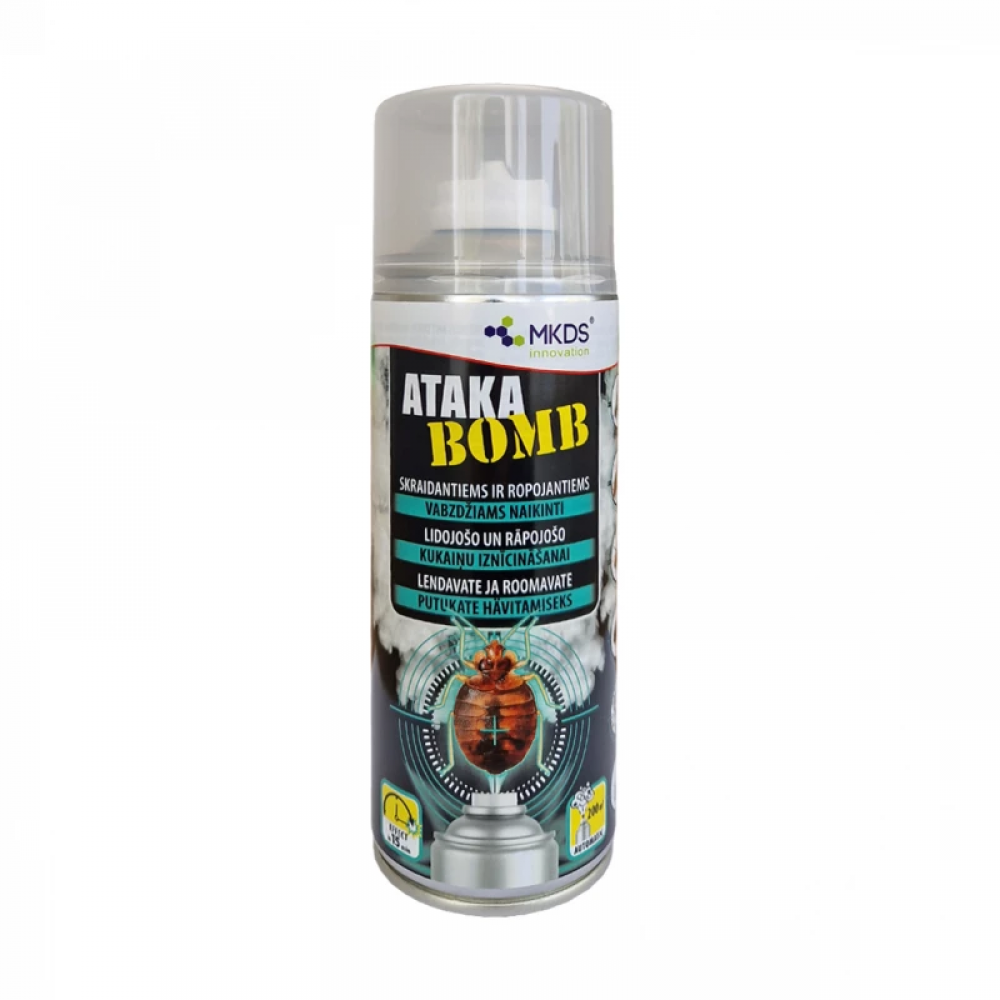 Ataka Bomb insekticidas skirtas ropojančiųjų (naminių prūsokų, juodųjų tarakonų, patalinės blakių, šuninių blusų, cukrinių žvyninukų) ir skraidančių vabzdžių (kambarinių musių, paprastųjų uodų, mašalų) naikinimui patalpose.