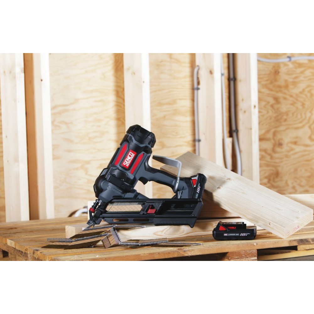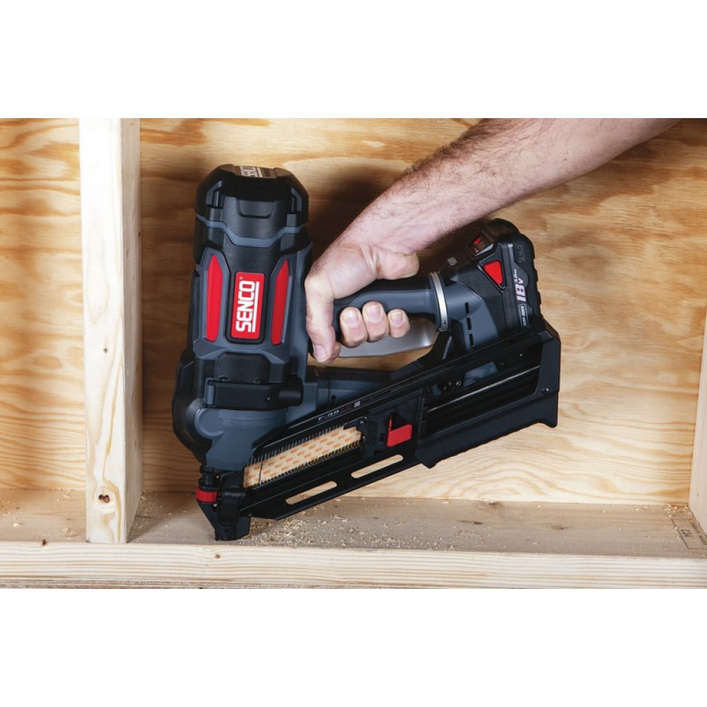 Akumuliatorinė viniakalė Senco F-35XP su Fusion technologija, užtikrinančia tikrą pneumatinį pojūtį, greitį ir galią bei patogumą naudojant belaidį įrankį.
