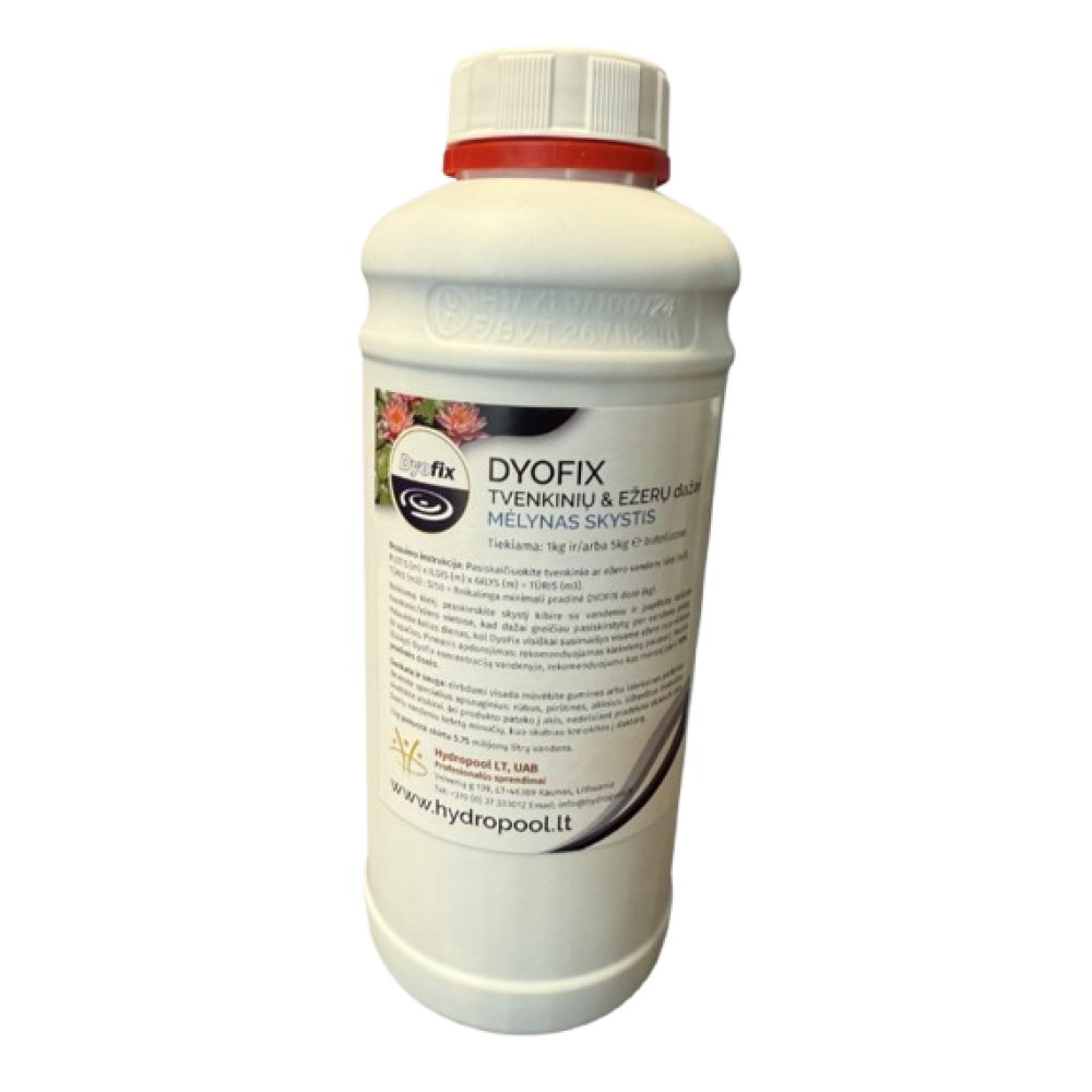 Naudojimas: supilkite rekomenduojamą skysčio kiekį į jūsų tvenkinį arba vandens telkinį. Produktas greitai išsiskirsto, suteikdamas vandeniui gražų mėlyną atspalvį ir padeda kontroliuoti dumblo augimą.