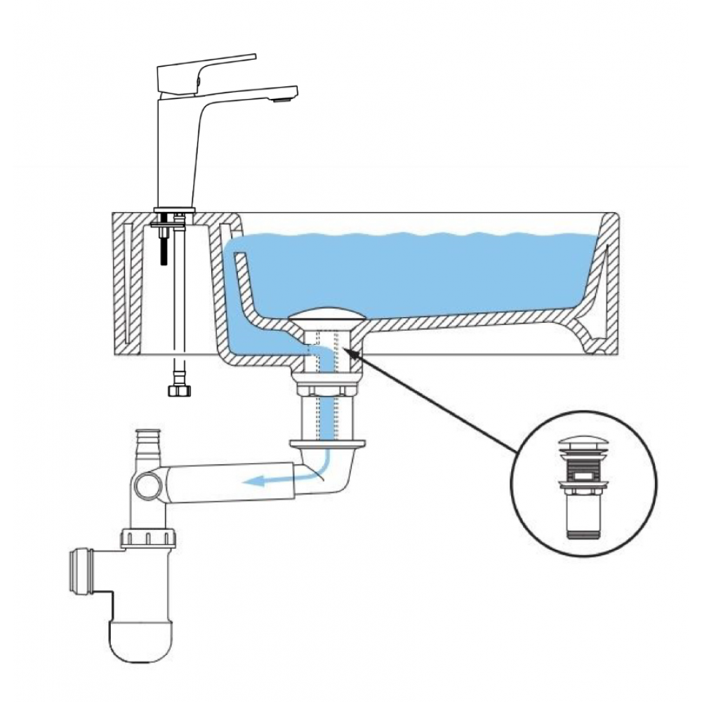 Dugno vožtuvas Click-Clack juodas 11/4"