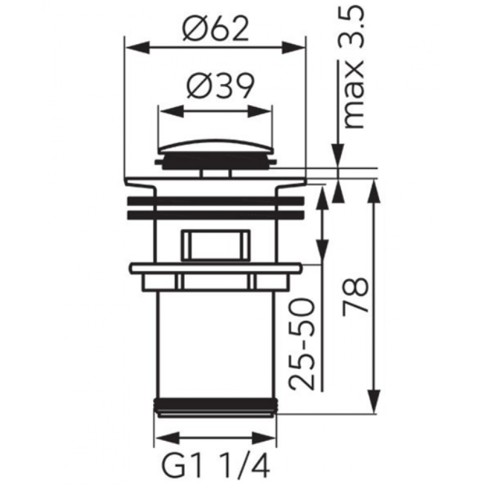 Paspaudžiamas praustuvo dugno vožtuvas.