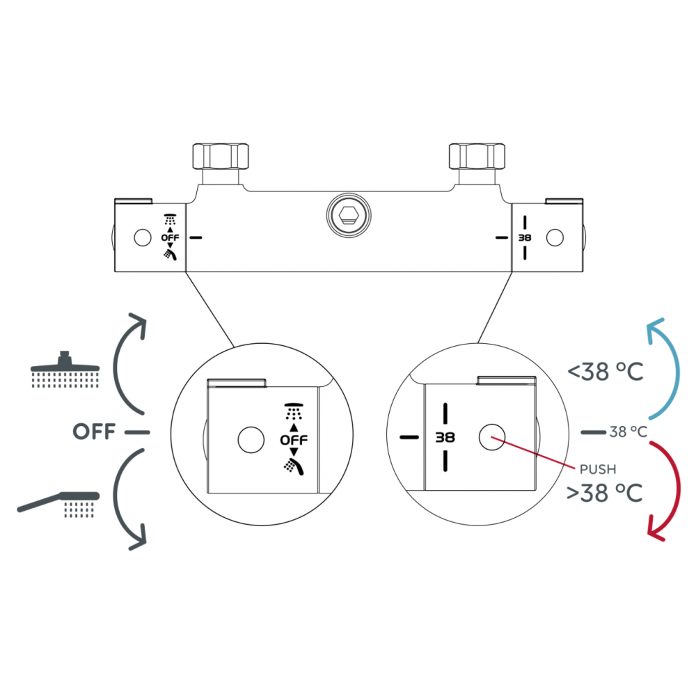 Maišytuvo konstrukcijoje naudojama aukščiausios klasės termostatinė kasetė su termoelementu.