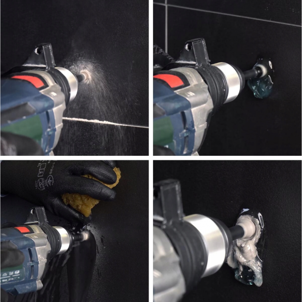 Gręžimo metu gelis sugeria dulkes, nešvarumus, juos suriša ir neleis jiems plisti.