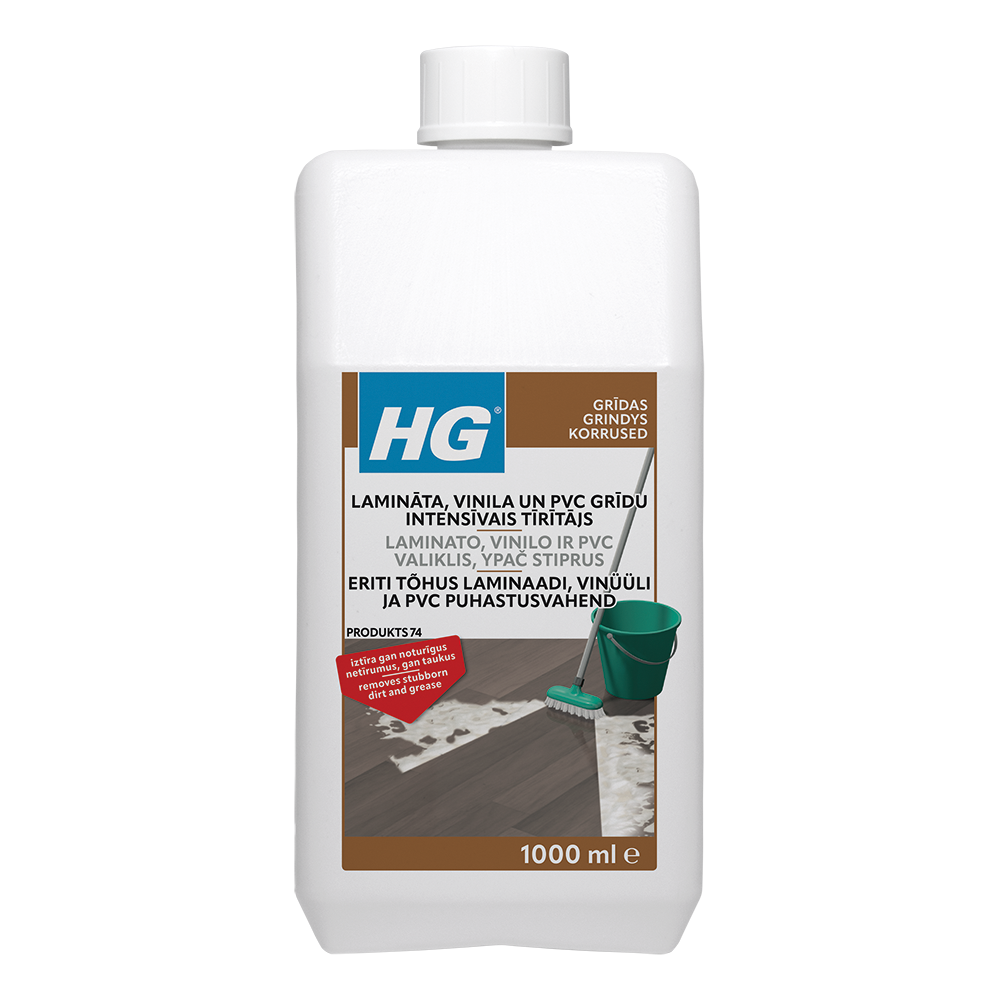 HG laminatui skirtas pridžiūvusio purvo valiklis - tai stiprus valiklis, skirtas greitai ir saugiai šalinti pridžiūvusį purvą, riebalus ir apsauginę plėvelė nuo bet kurios rūšies laminato grindų.