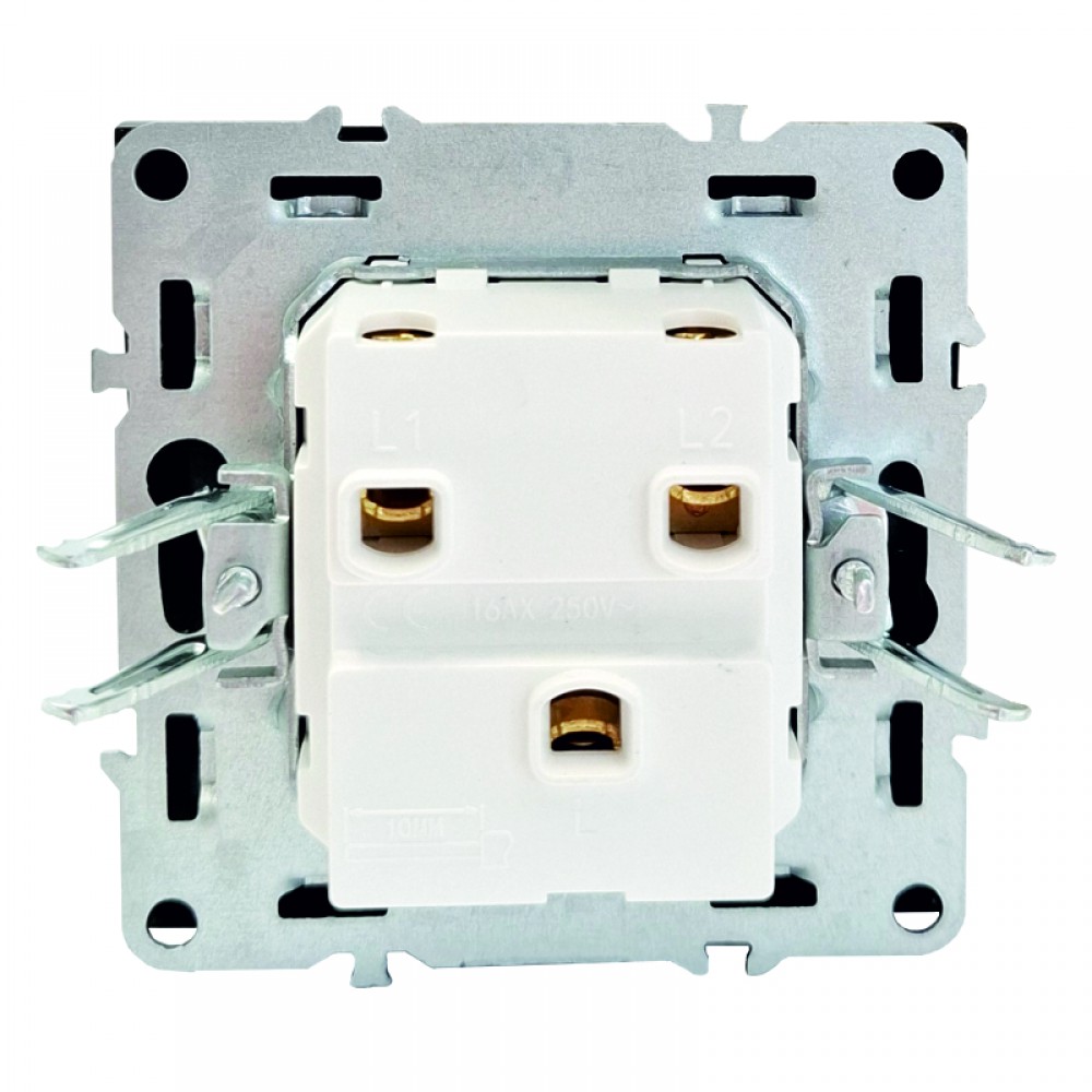 Jungiklis BORA žaliuzių 2 klavišų baltas be rėmelio.