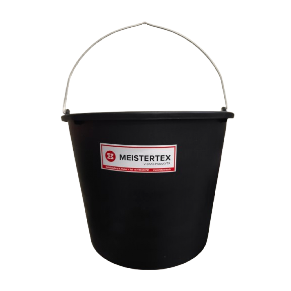 Plastikinis kibiras su metaline rankena.