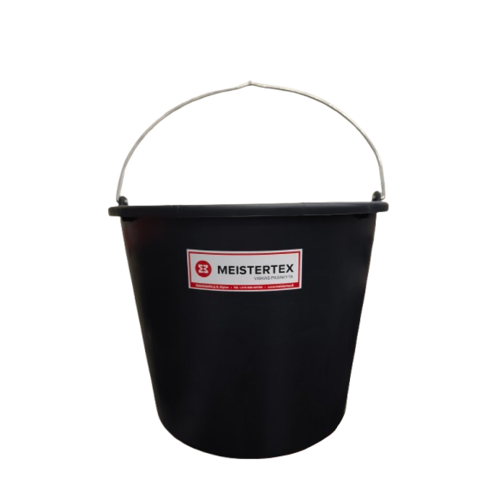 Plastikinis kibiras su metaline rankena.