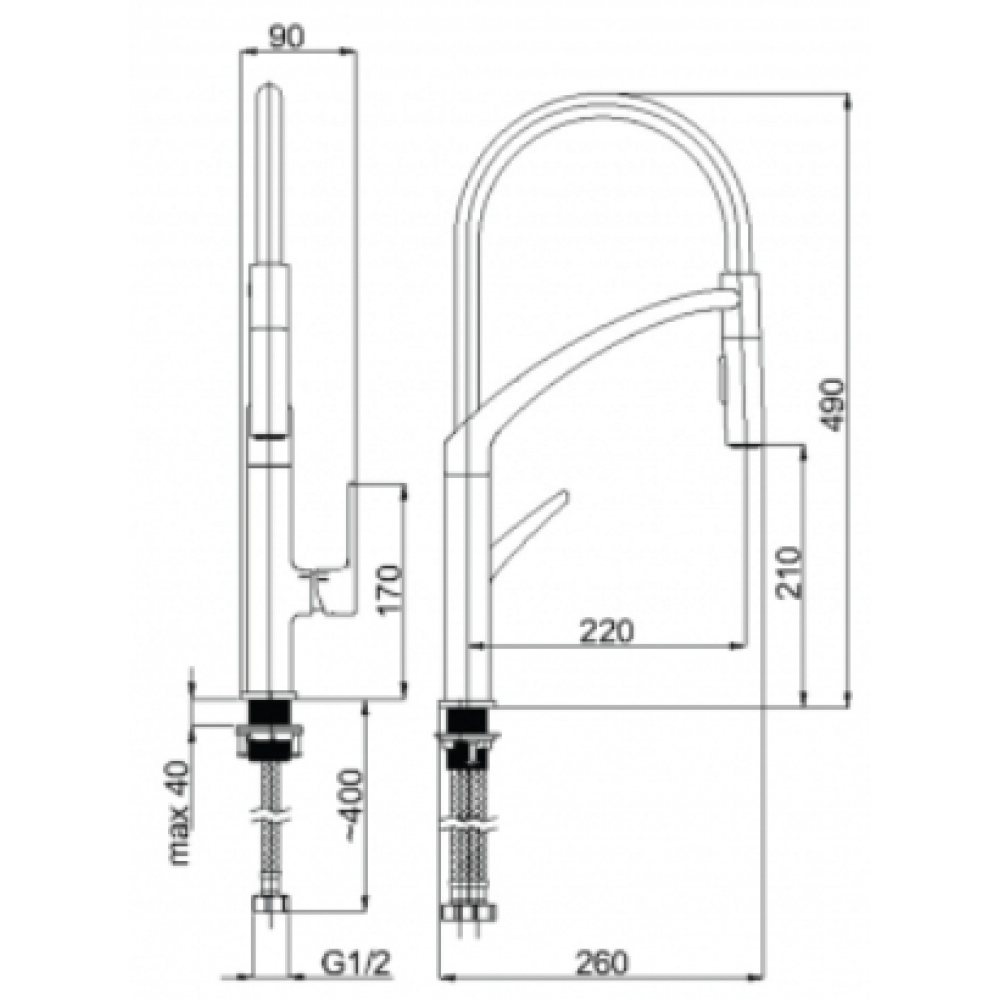 Virtuvės maišytuvas lanksčiu snapeliu su magnetiniu pritraukimu ir fiksavimu bei dviem vandens paleidimo funkcijos.