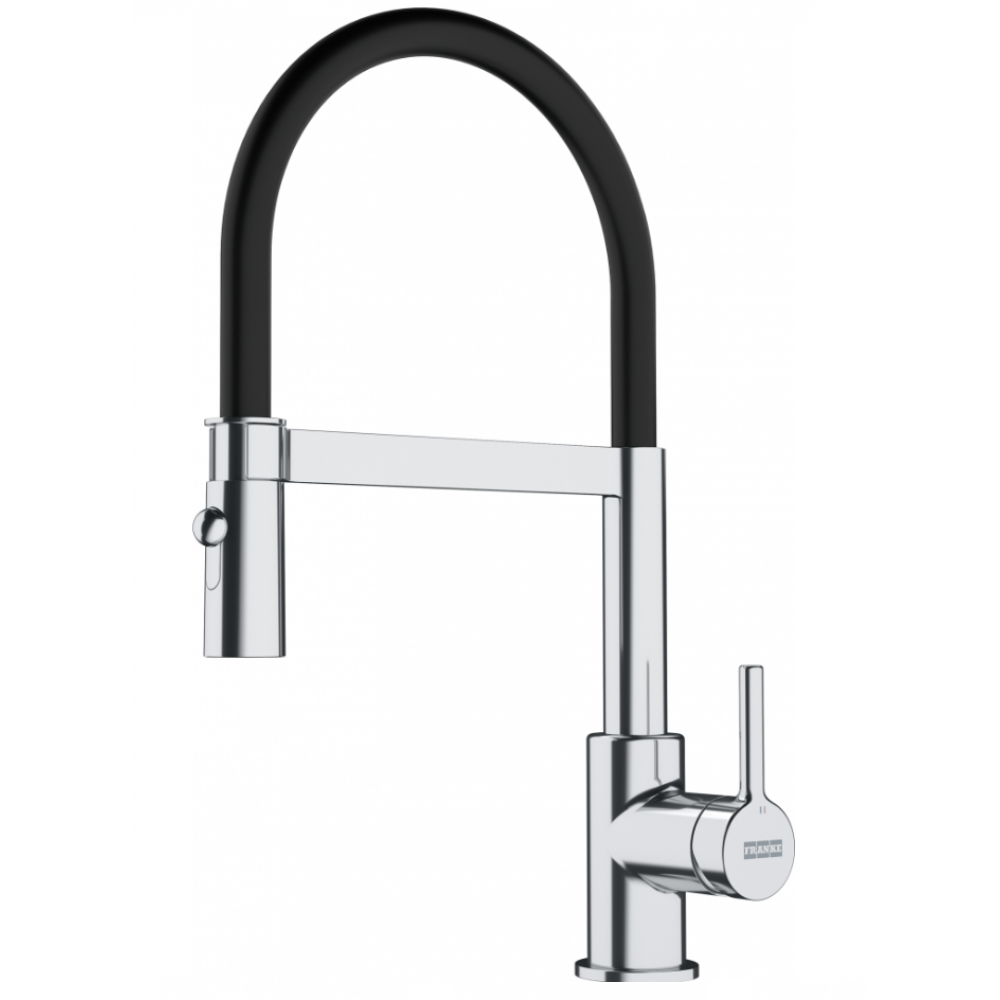 Modernaus stiliaus virtuvinis maišytuvas su ištraukiamu dušeliu ir dviguba purškimo funkcija.