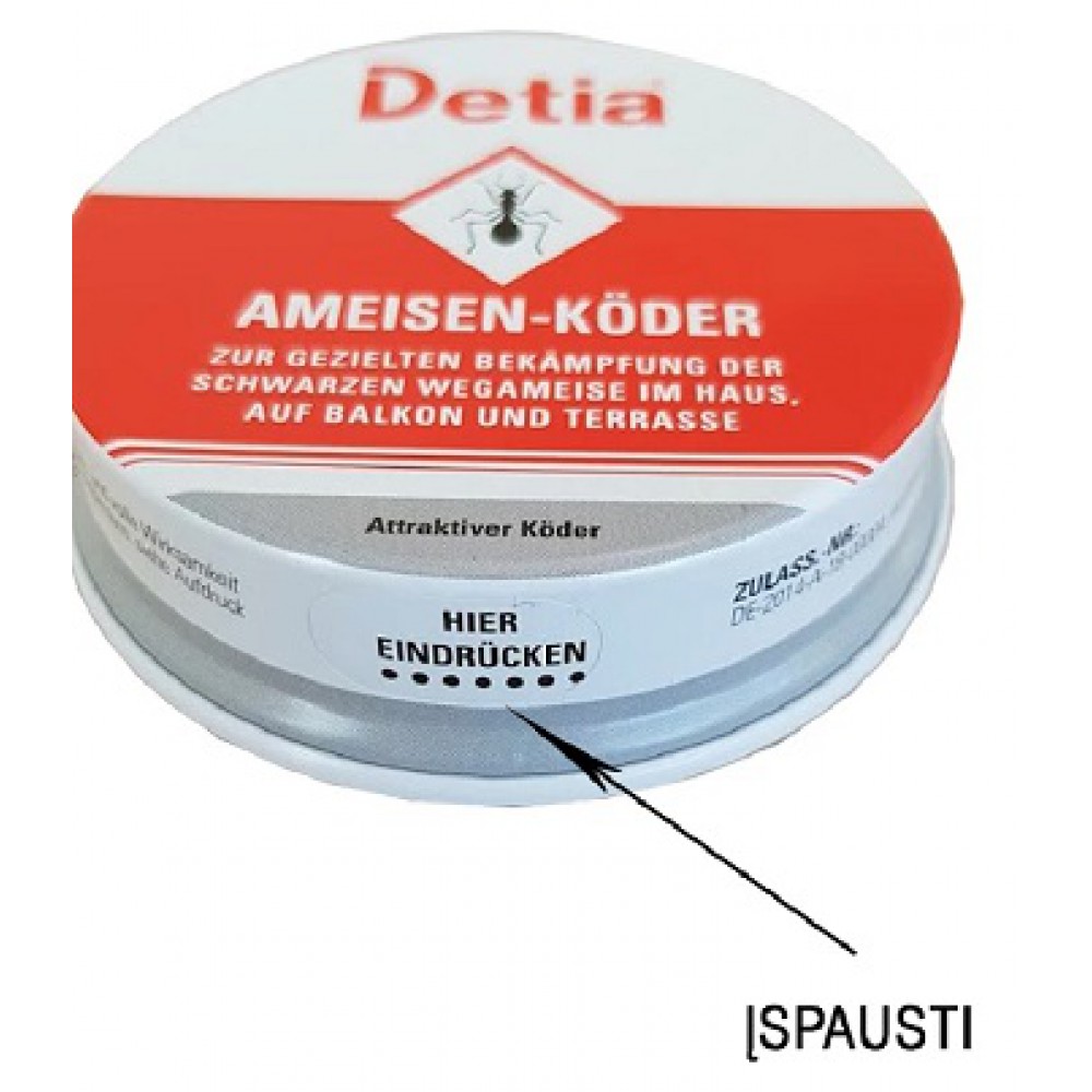 Metalinė dėžutė skruzdėms naikinti DETIA, 5g.