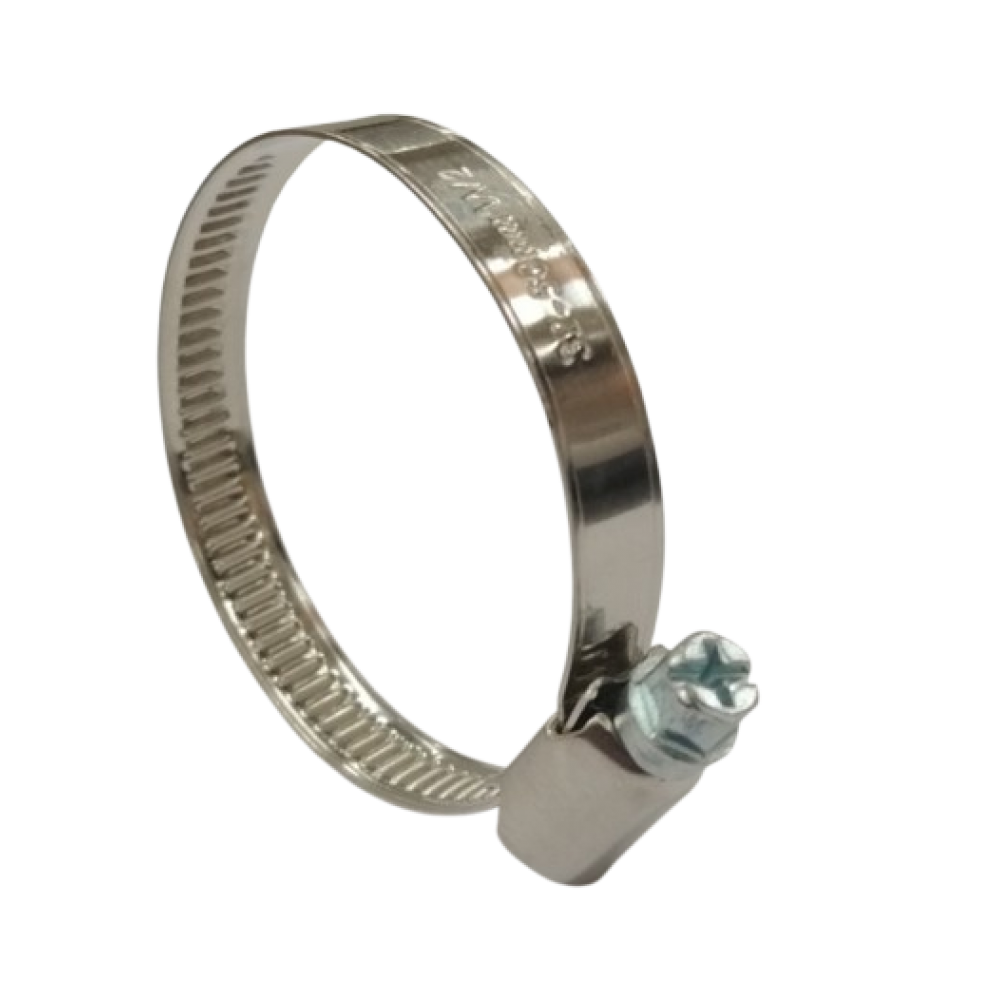 Sąvaržos juosta ir korpusas pagaminti iš nerūdijančio plieno, o varžtas iš cinkuoto plieno.