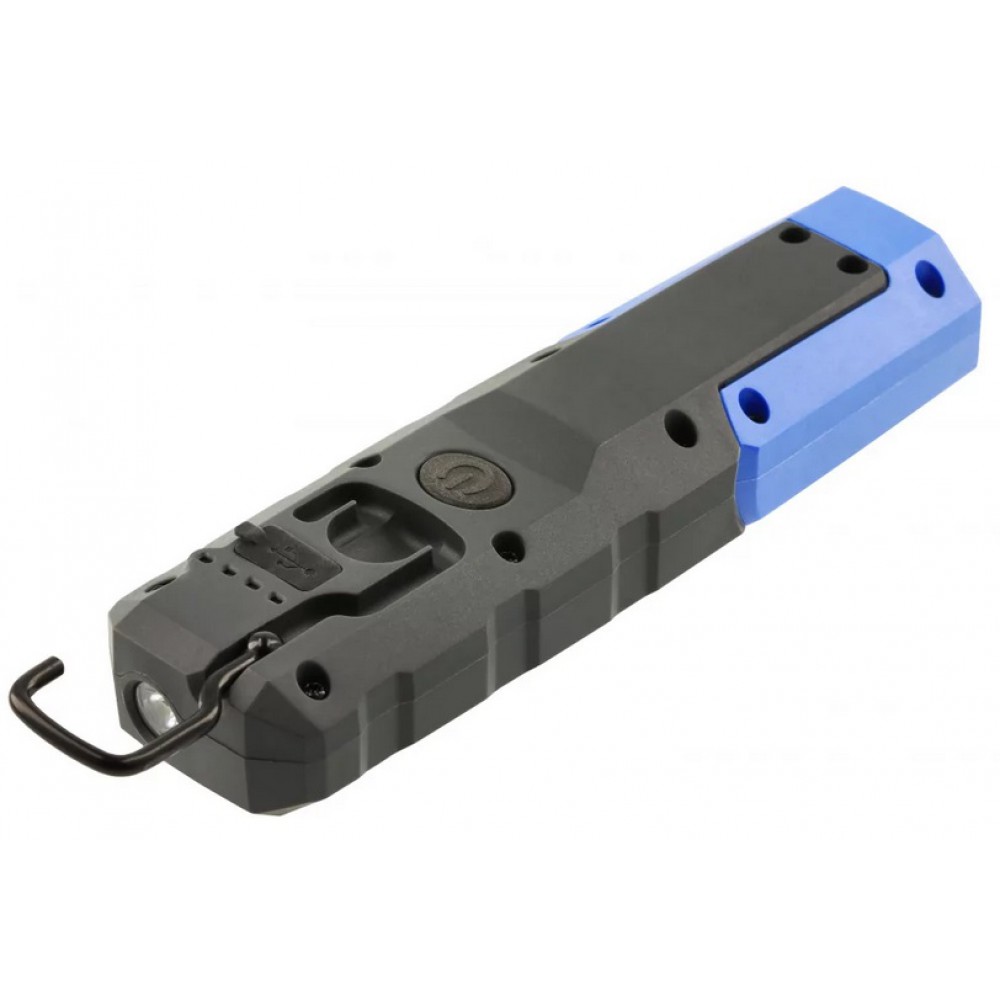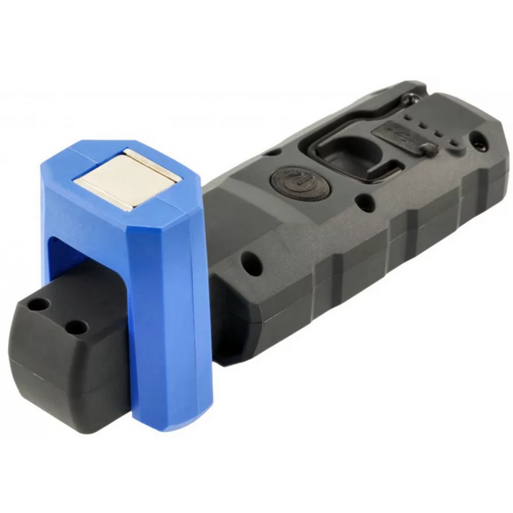 Stiprus magnetas ir sulankstomas kabliukas leidžia pritvirtinti žibintuvėlį ir atlaisvinti rankas darbui.
