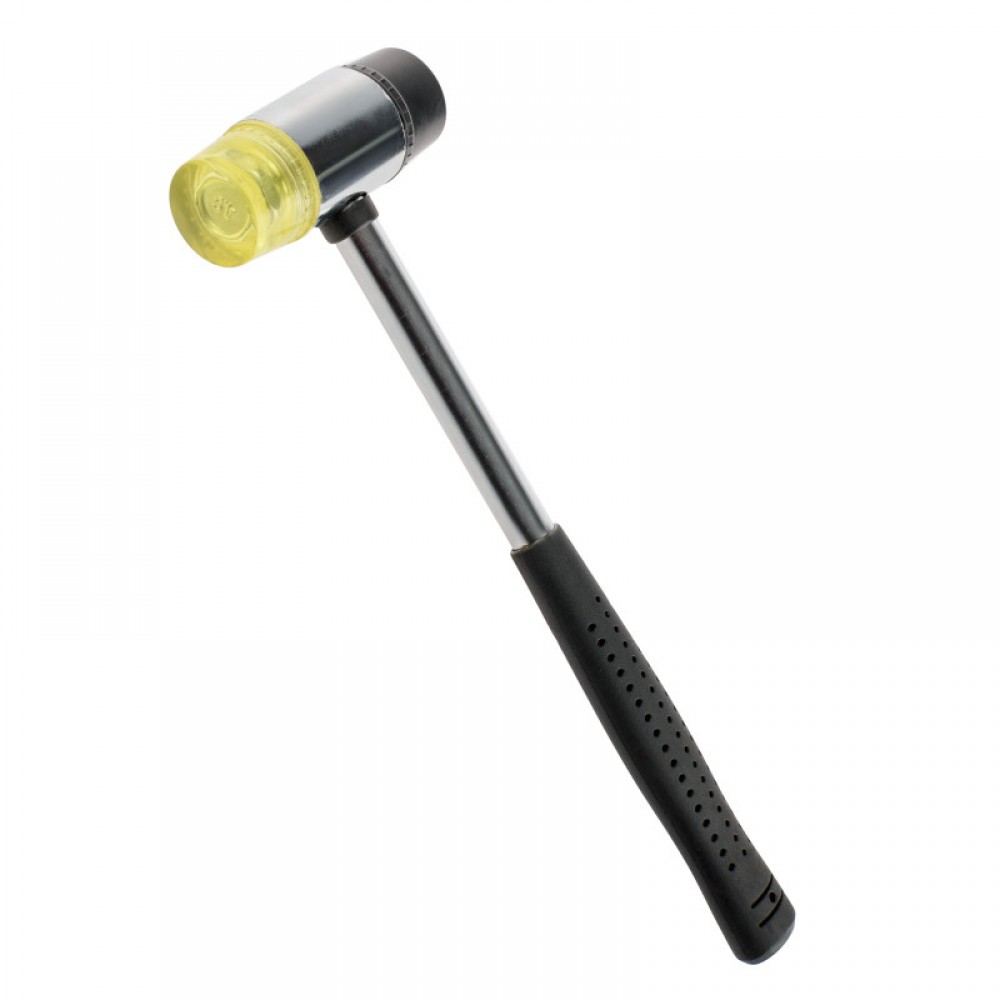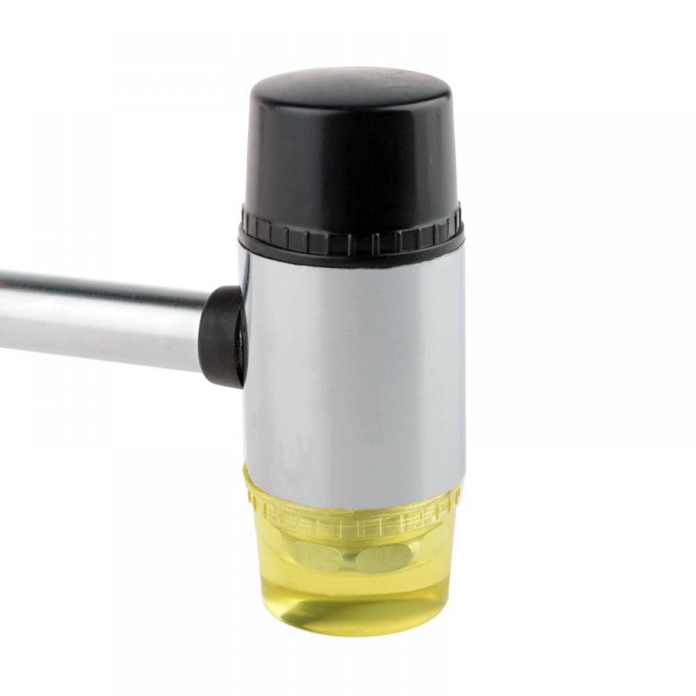 Keičiamos galvutės: Rinkinį sudaro dvi galvutės – viena pagaminta iš gumos, o kita – iš poliuretano. Tai leidžia pasirinkti norimą kietumo lygį, atsižvelgiant į apdorojamą medžiagą.