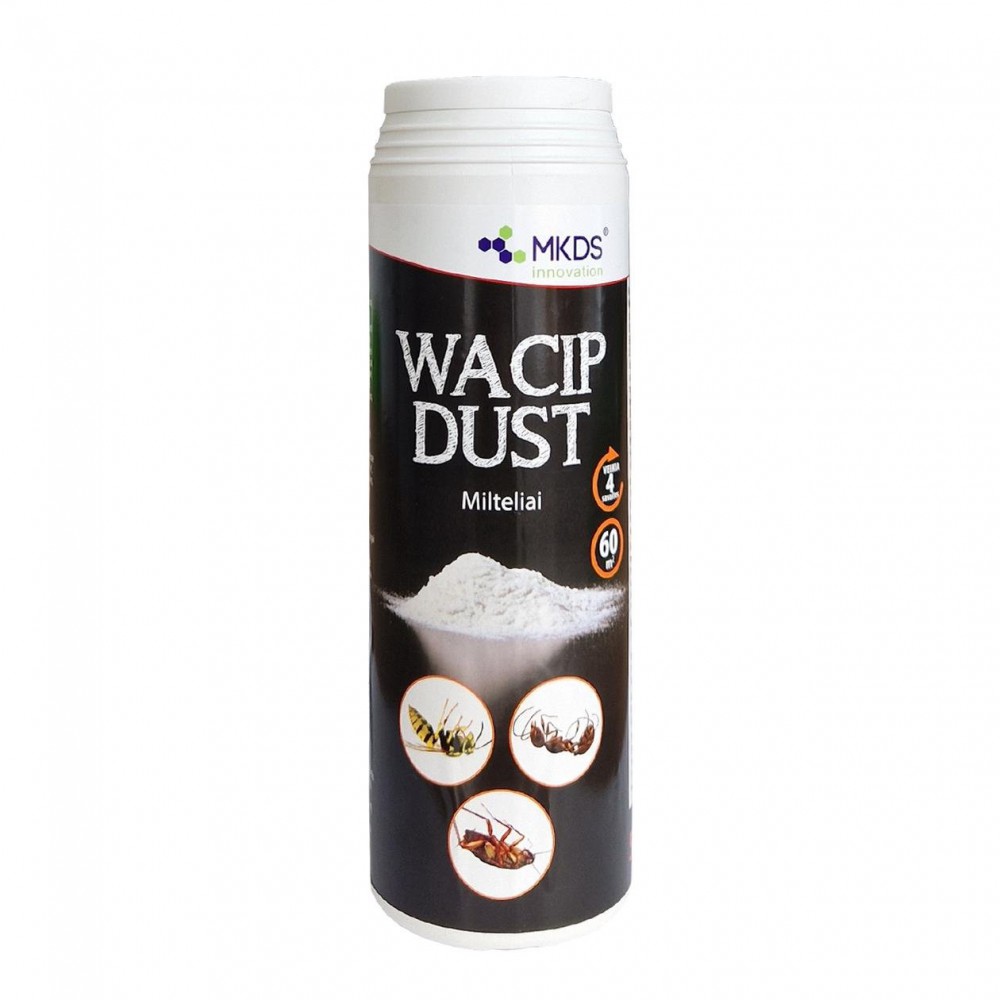 Paruošti naudoti WACIP DUST milteliai skirti ropojantiems vabzdžiams (tarakonams, skruzdėms ir kt.) bei vapsvoms naikinti gyvenamosios, viešosios ir ūkinės paskirties patalpose ar išorėje prie pastatų.