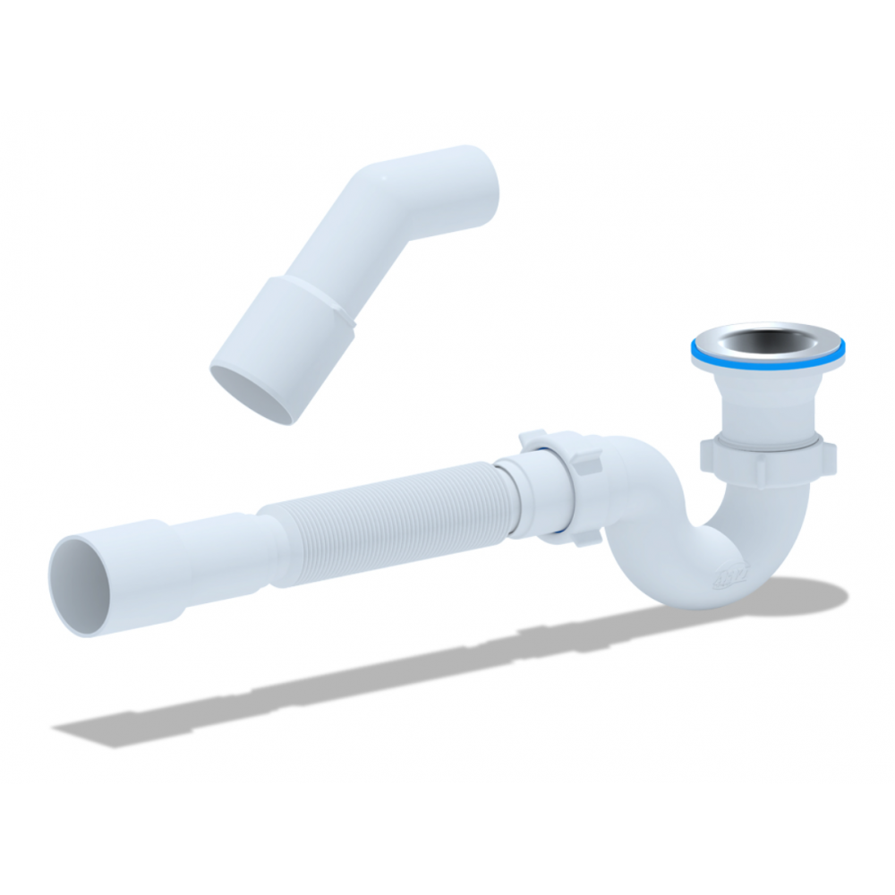 Dušo padėklo sifonas su lankščia žarna 375x40x40/50 ir vamzdžiu 45" 40x50.