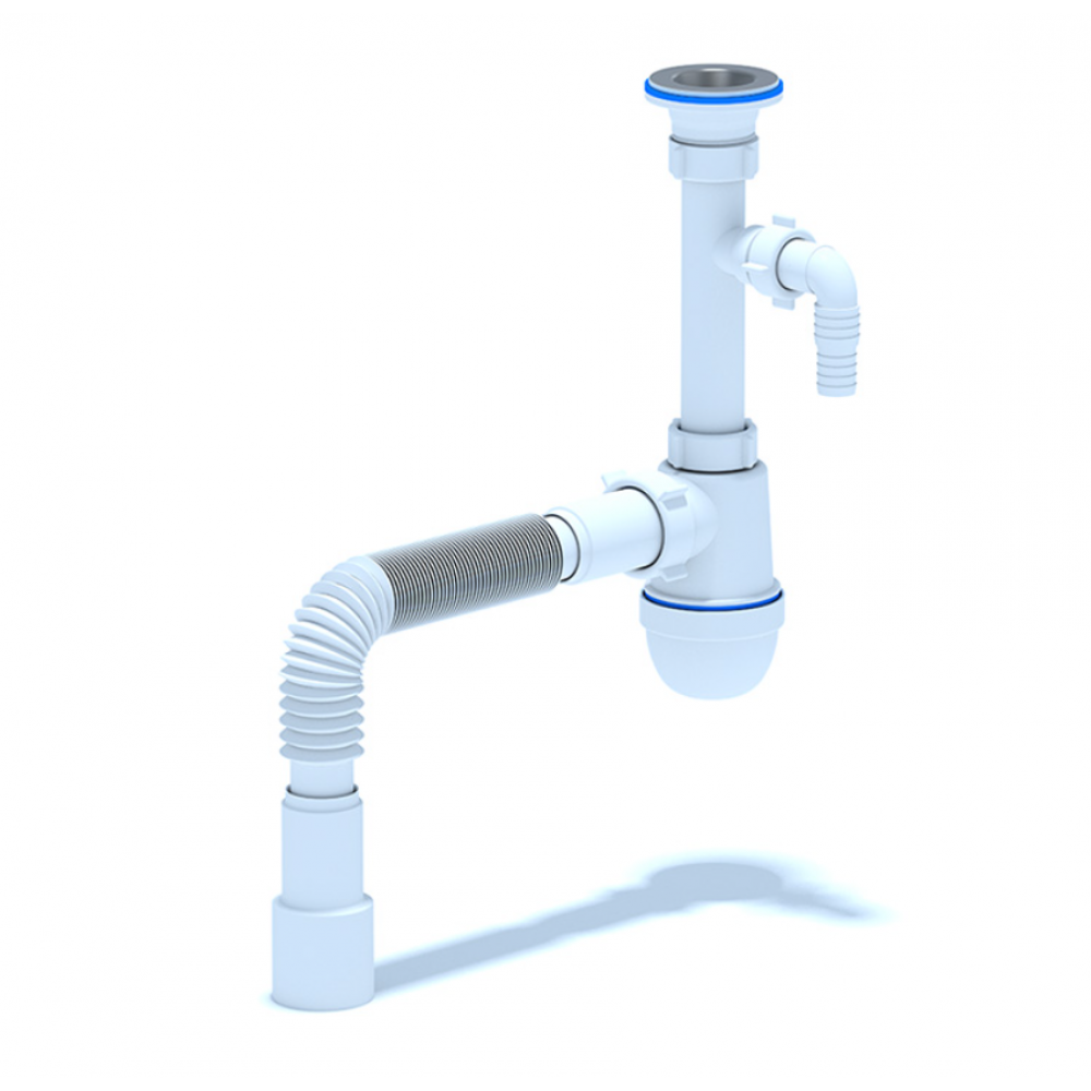 Sifonas su nubėgimu skalbimo mašinai ir lanksčia žarna.