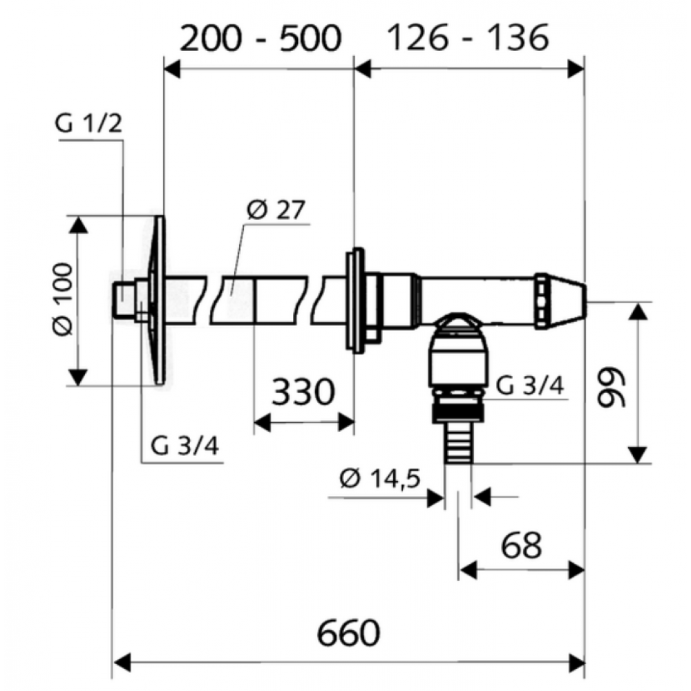 Žarnos prisukimo jungtis Ø 14,5 mm (DN 20 G 3/4 AG).