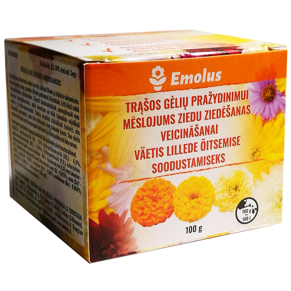 Kompleksinė, bechlorė trąša skirta tręšti prieš žydėjimą gėles ir daigus. Ypač tinka chrizantemų pražydinimui.