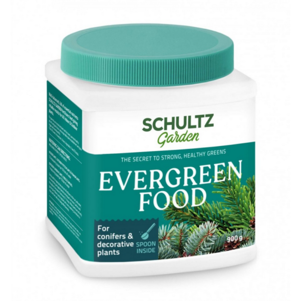 Subalansuotos kokybiškos trąšos Schultz EVERGREEN FOOD, skirtos spygliuočiams ir dekoratyviniams augalams.