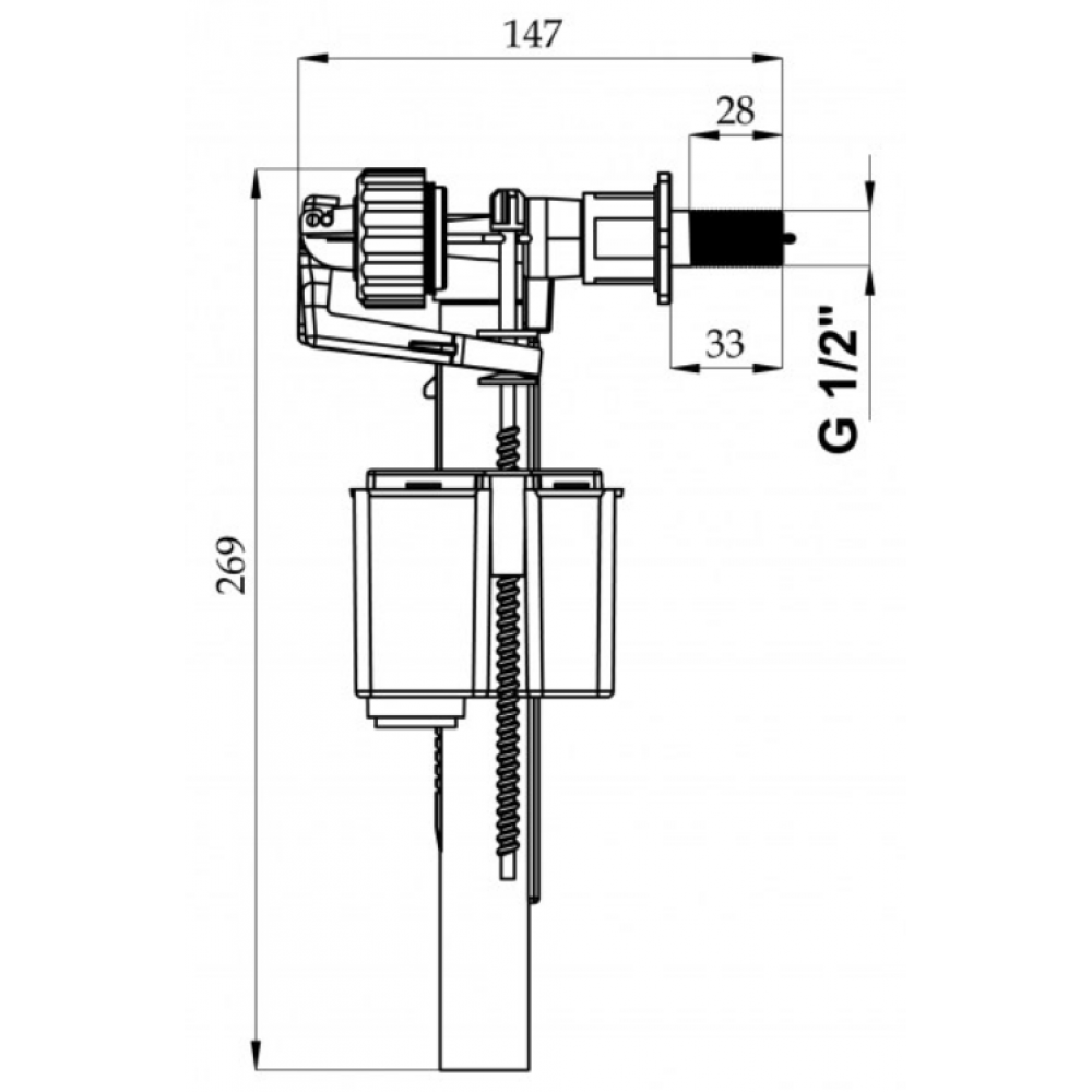 Šoninis tualeto bakelio užpildymo mechanizmas su žalvarine 1/2" jungtimi.