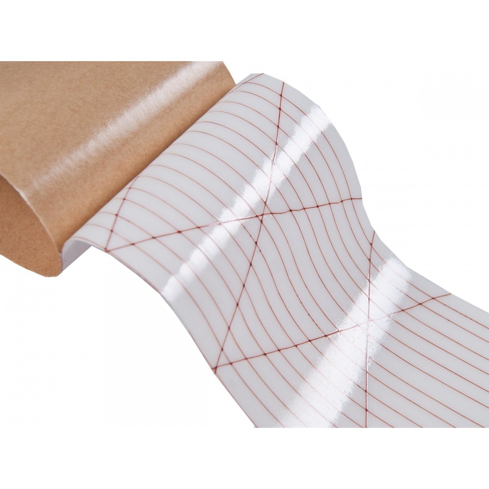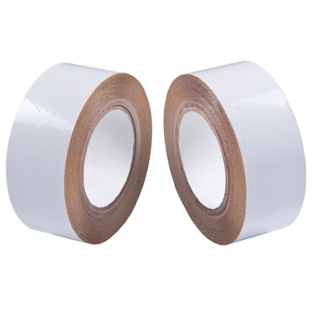 Vienpusė sustiprinta juosta polipropileno ir polietileno plėvelėms klijuoti ir taisyti bei sujungti juos su kitais plastikais.