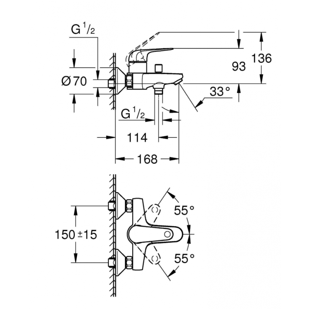 Dušo išleidimo anga 1/2" su integruotu atbuliniu vožtuvu.