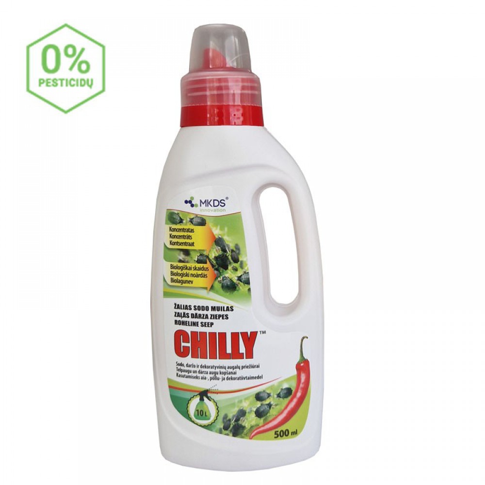 Čili pipirų ekstraktu praturtintas žalias sodo muilas pagamintas iš kalio riebalų rūgščių.
